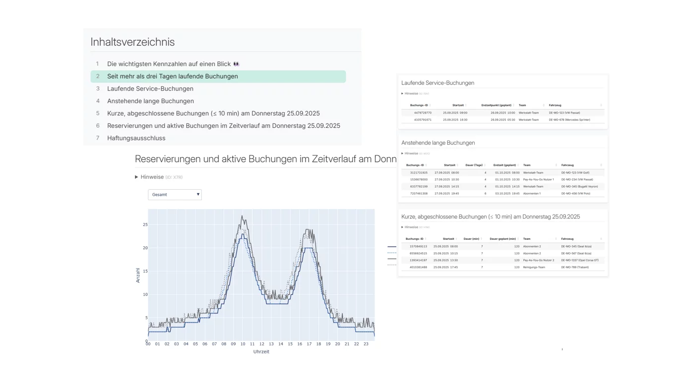 Automatisierte Reports direkt in Ihrem Posteingang. Wichtige Kennzahlen wie Verfügbarkeit, Auslastung, Umsatz und mehr – automatisch erstellt und basierend auf bewährten operativen Best Practices.